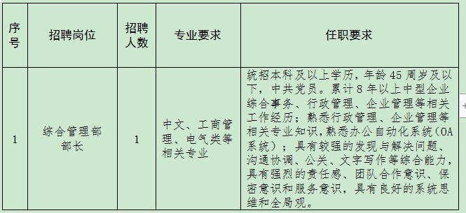 根據(jù)公司經(jīng)營發(fā)展需要,現(xiàn)面向社會招聘行政管理、財務(wù)、安全質(zhì)量、變壓器專家、市場管理、檢測專業(yè)人才,有關(guān)事項(xiàng)公告如下: